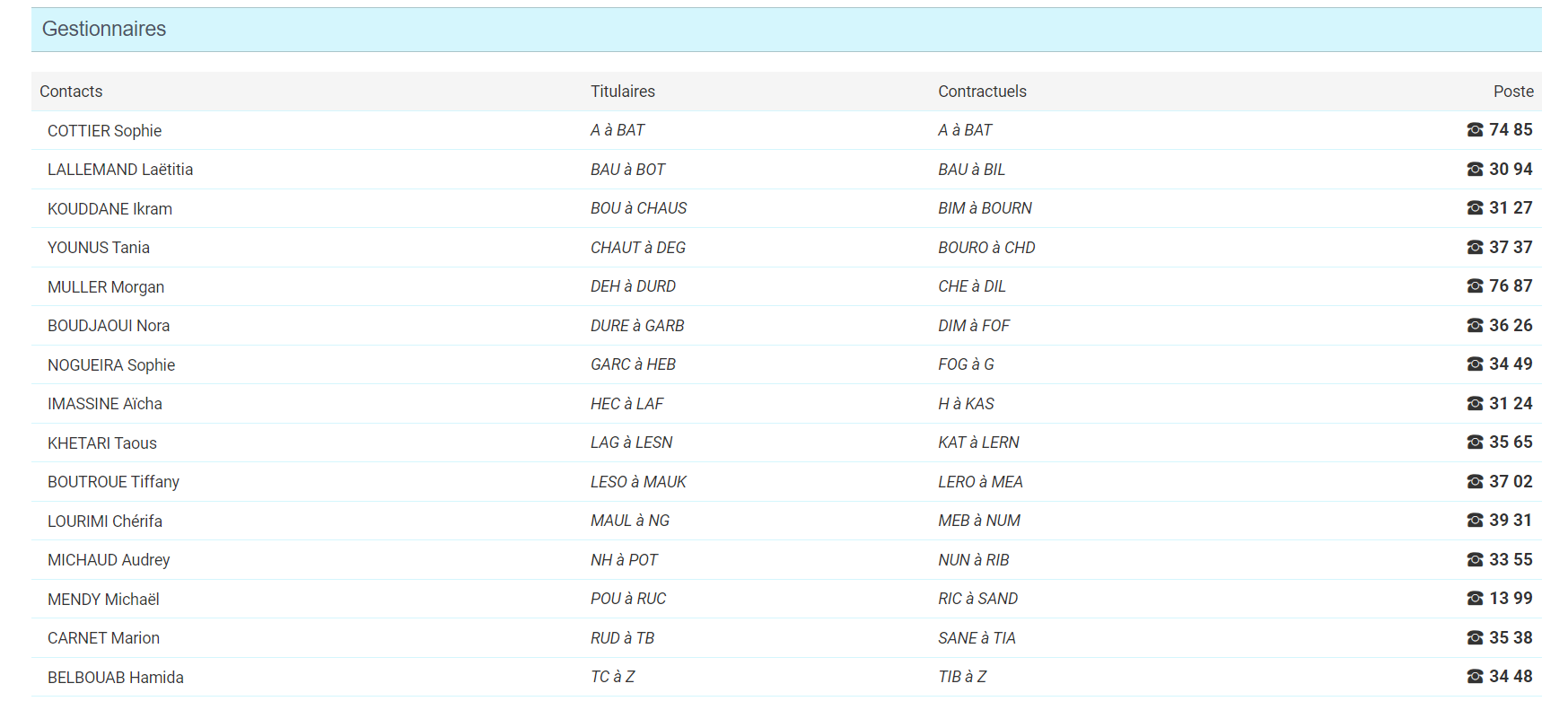 Poste vacant (pour les agents de F à L) au 01.34.25.31.42